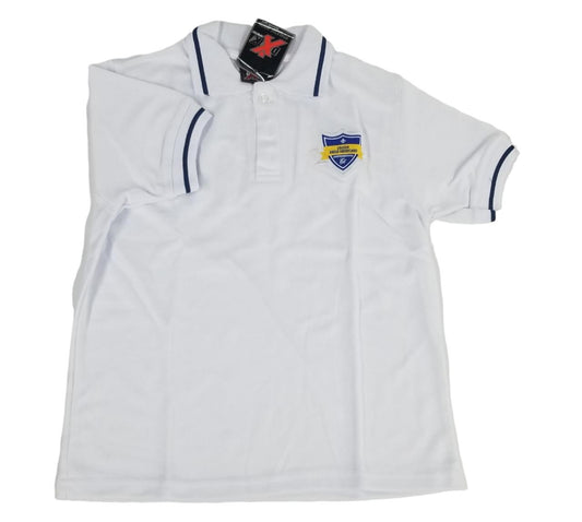 PLAYERA POLO COLEGIO ANGLO AMERICANO SECUNDARIA BLANCA Y AZUL MARINO